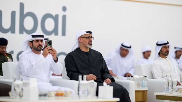 خالد بن محمد بن زايد وحمدان بن محمد بن راشد يشهدان العرض الجوي المصاحب لـ«معرض دبي للطيران»