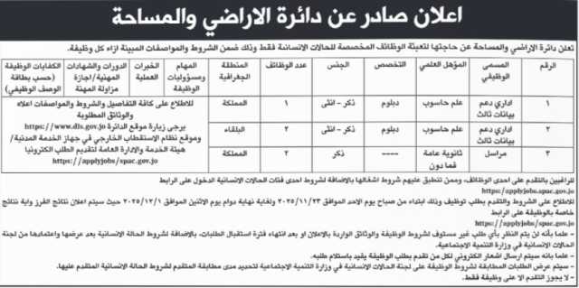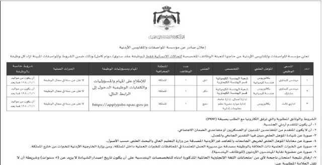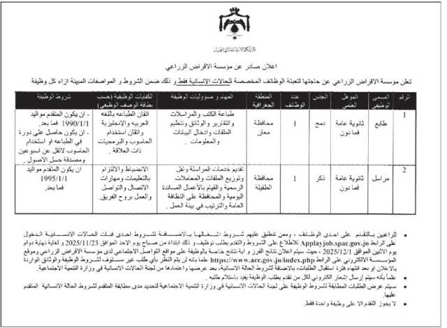 صراحة نيوز-أعلنت مؤسسات حكومية، اليوم الثلاثاء، عن حلجتها لتعبئة وظائف شاغرة