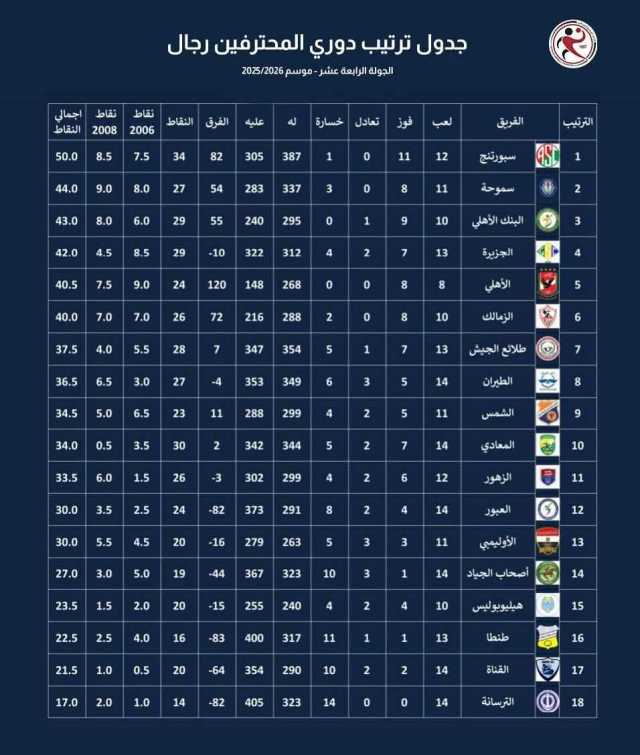 ترتيب دوري المحترفين لكرة اليد.. تفاصيل