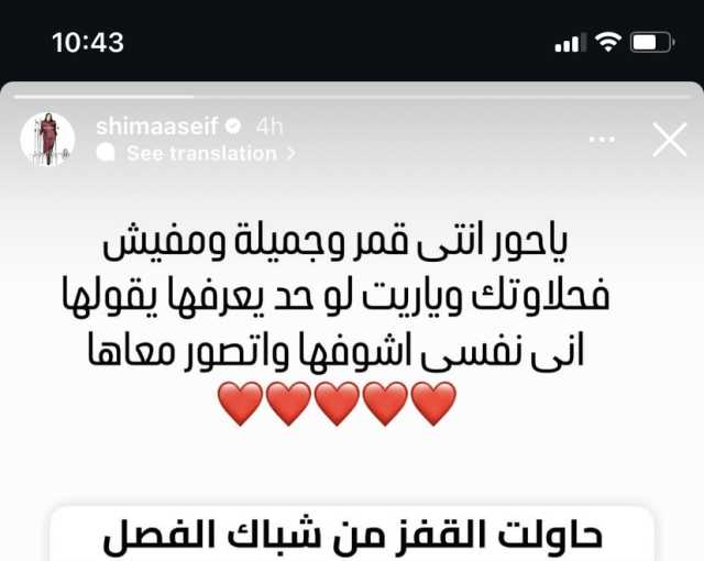 وقالت شيماء سيف عبر حسابها بموقع التواصل الاجتماعي للصور والفيديوهات القصيرة إنستجرام: "يا حور أنتي قمر وجميلة، ومفيش في حلاوتك وياريت لو حد يعرفها يقولها إني نفسي أشوفها وأتصور معاها".