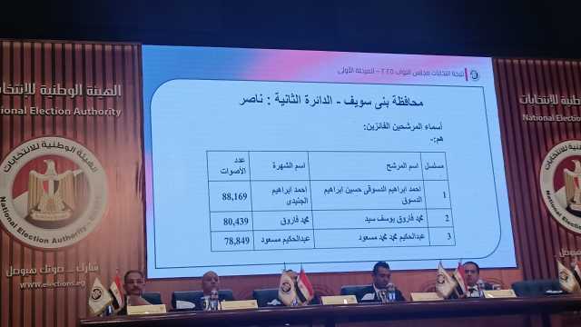 الهيئة الوطنية تعلن عن فوز 4 مرشحين عن دائرتى ناصر وإهناسيا ببنى سويف