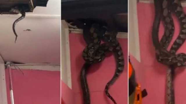 ثعبان 55 كيلو يقتحم سقف منزل بماليزيا.. لحظات وثقتها الكاميرات