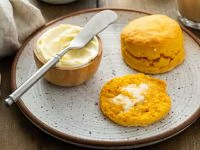 بسكويت البطاطا الحلوة الشهي مع زبدة العسل الحارةيعد بسكويت البطاطا الحلوة مع زبدة العسل خيار مثالي ومحبب عند الكبار والصغار على حد سواء:
