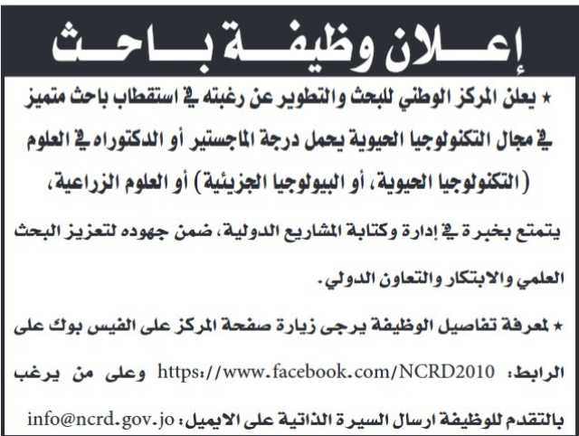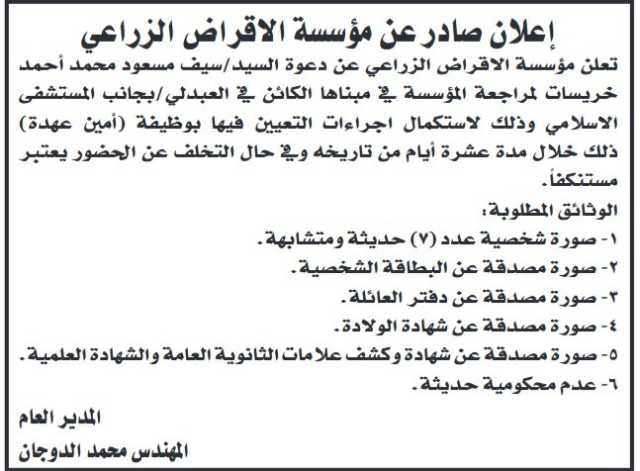 اعلنت #مؤسسات_حكومية اليوم الأربعاء عن #وظائف_شاغرة كما دعت مؤسسة الاقراض الزراعي لاستكمال #اجراءات_التعيين.
