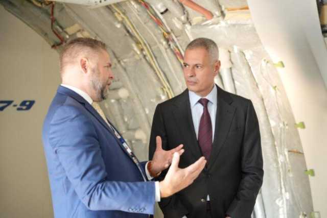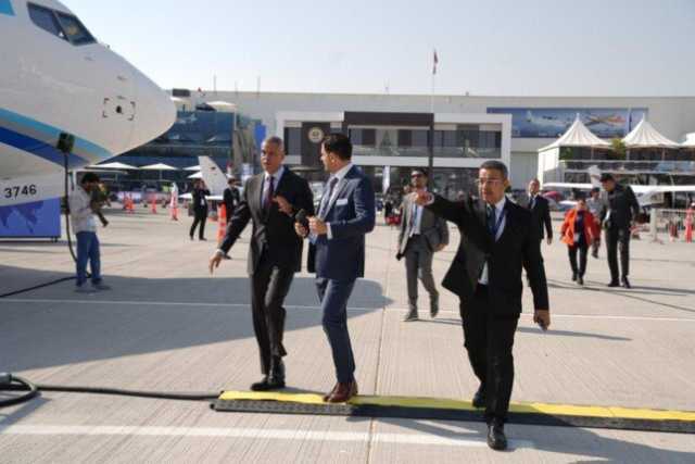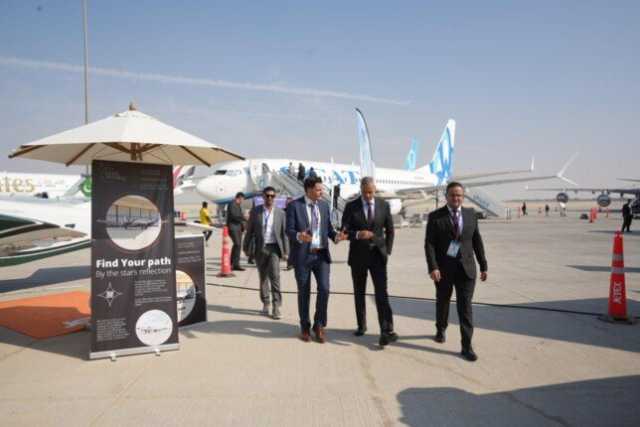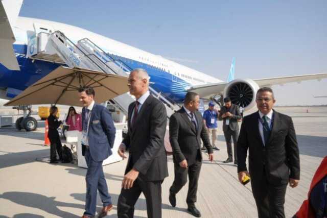 رئيس مصر للطيران يتفقد طائرة «Boeing 777X» أثناء مشاركتها في العرض الثابت بمعرض دبي للطيران 2025