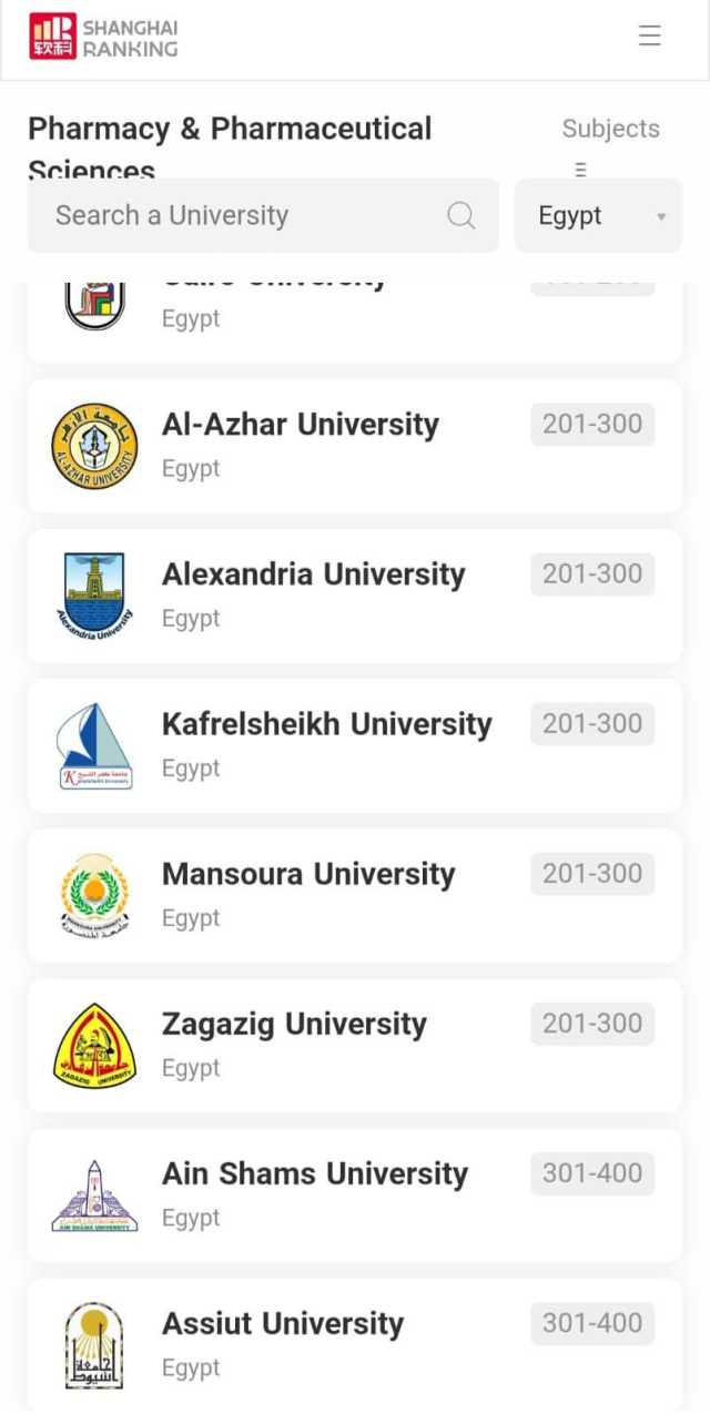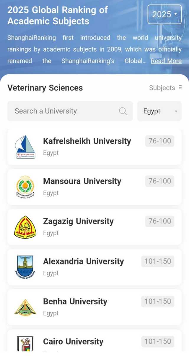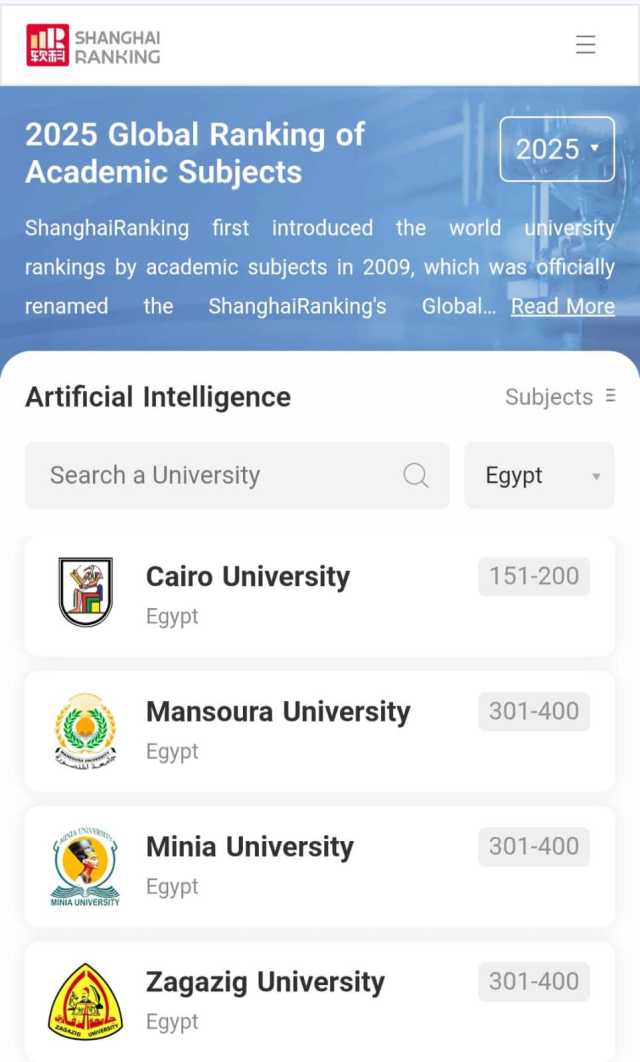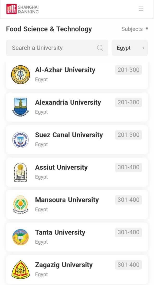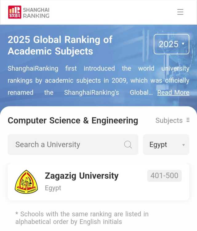 جامعة الزقازيق الأولى محلياً في 4 تخصصات في تصنيف شنغهاي للتخصصات لعام 2025