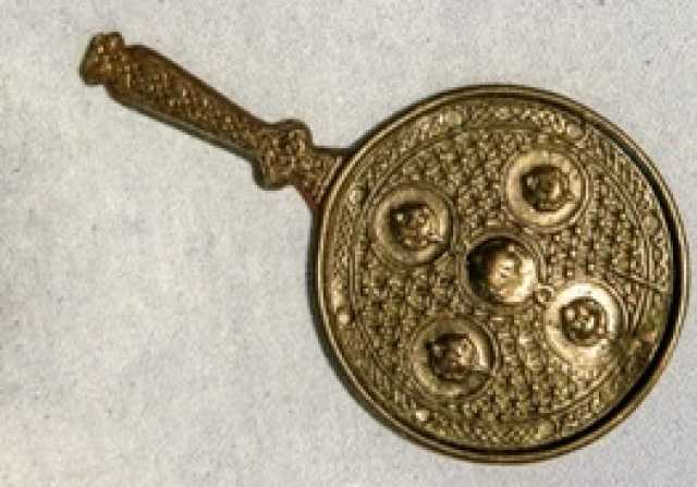 • متحف مطار القاهرة – مبنى 3: يعرض مرآة نحاسية بظهر محفور بزخارف آدمية وحيوانية داخل دوائر.