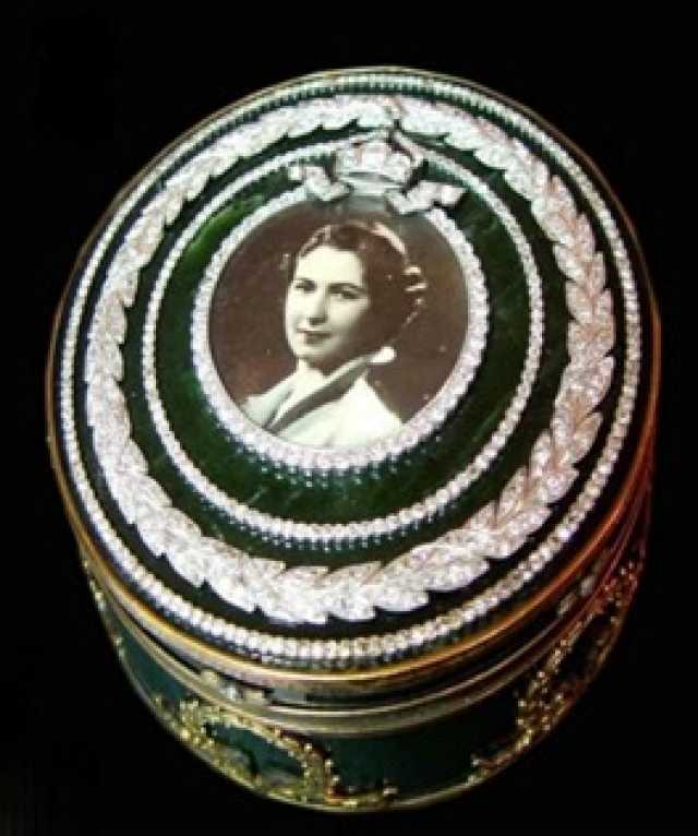 • متحف المجوهرات الملكية: يعرض علبة عقيق مطعّمة بالذهب والماس تحمل صورة الملكة فريدة، أُهديت لها من الملك فاروق بمناسبة زواجهما.