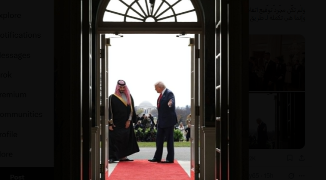 وأقام ترامب احتفالًا رسميًا وحفل عشاء على شرف ولي العهد السعودي، الذي وصل إلى البيت الأبيض في وقت سابق من اليوم الأربعاء.