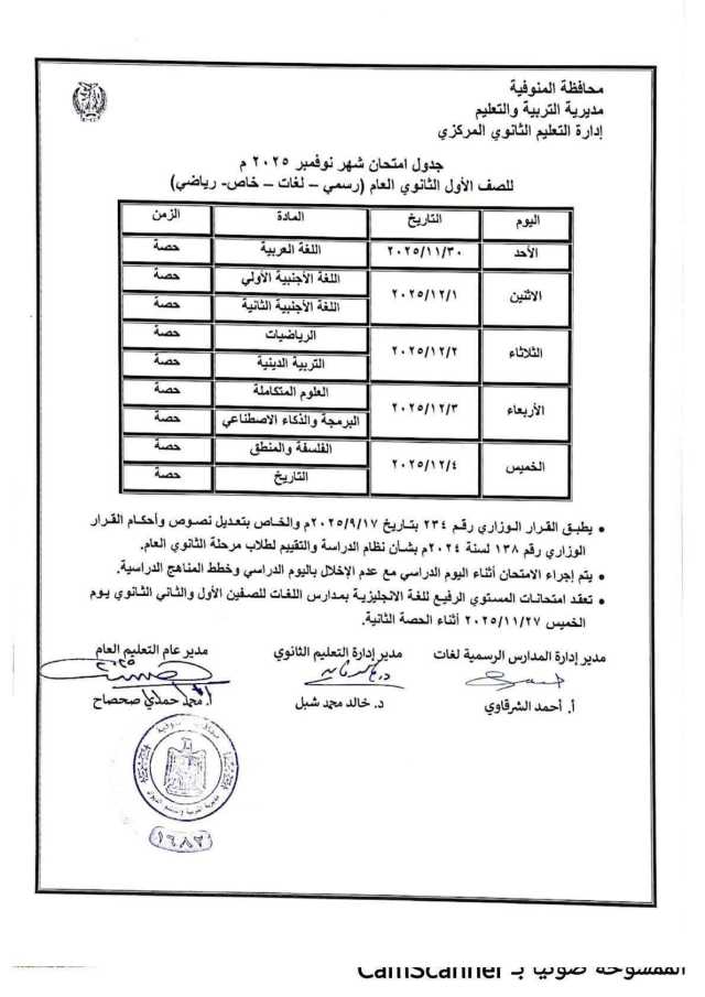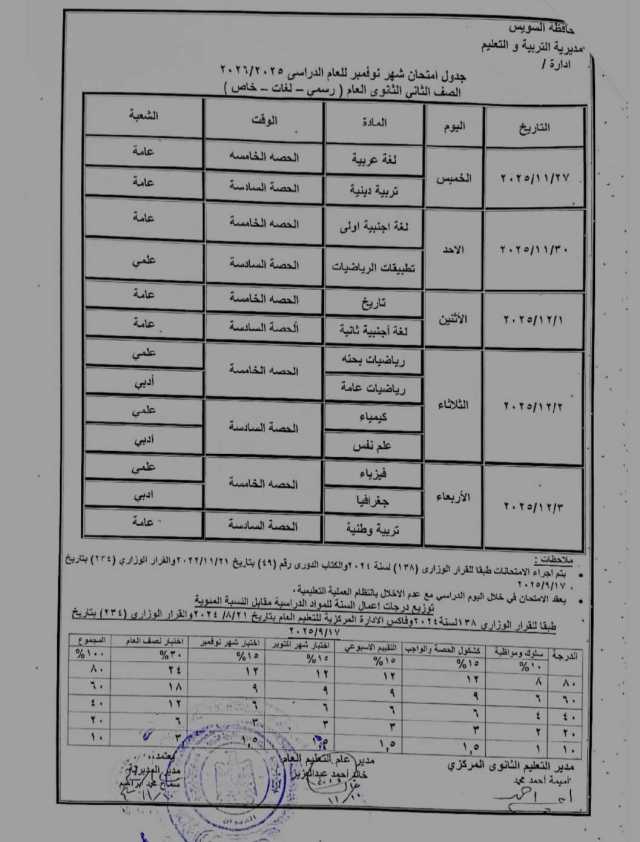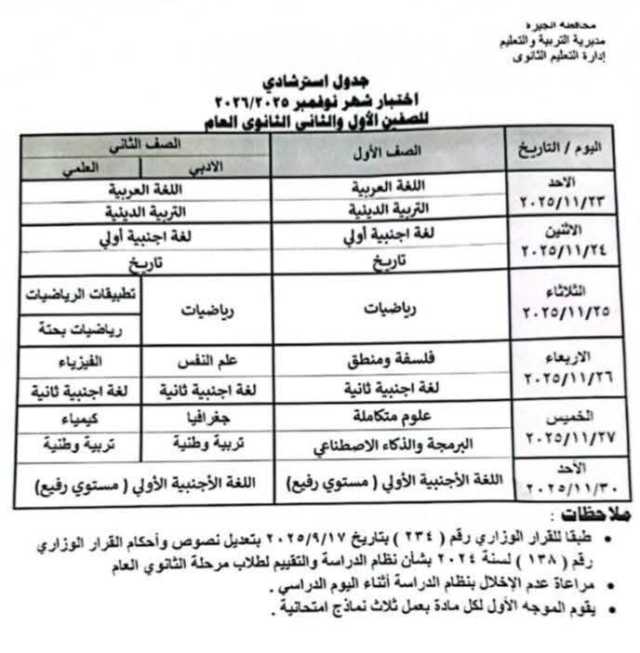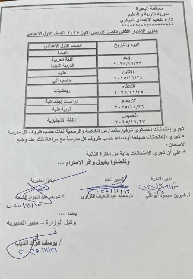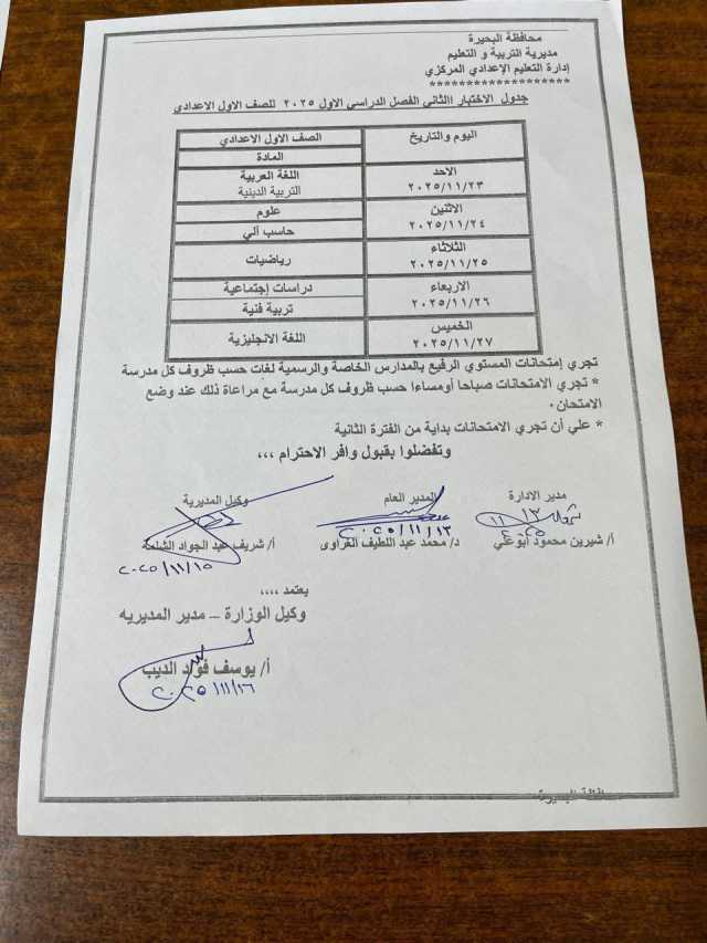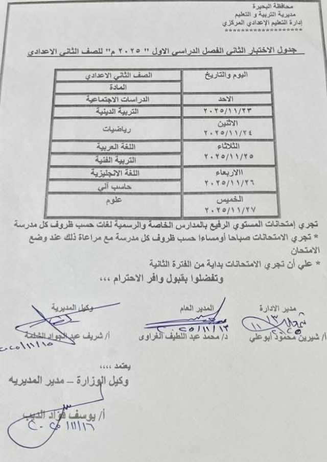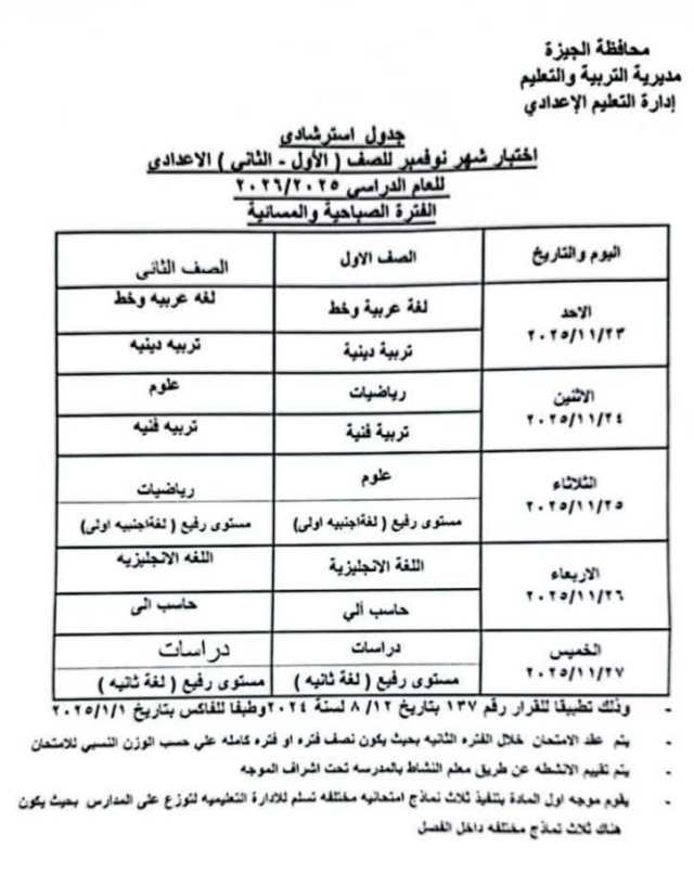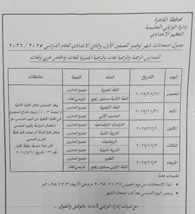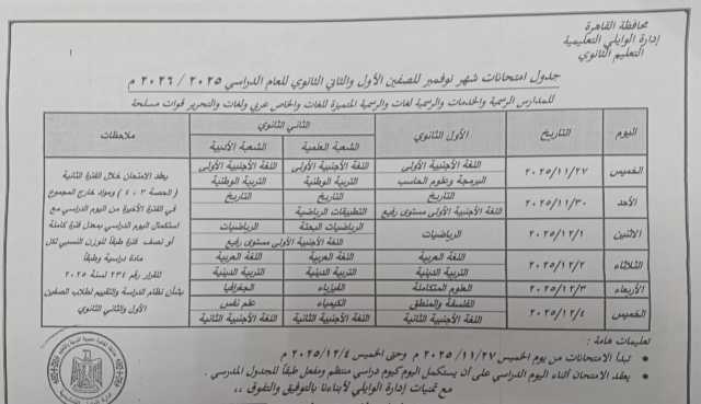وفيما يلي ينشر موقع صدى البلد بالصور جدول امتحانات شهر نوفمبر 2025 جميع المحافظات