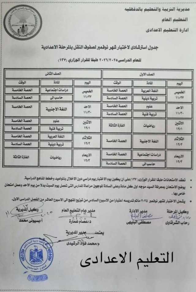 تنطلق الاسبوع القادم امتحانات شهر نوفمبر 2025 لطلاب صفوف النقل في المحافظات التي انتهت من المرحلة الأولى من انتخابات مجلس النواب 2025