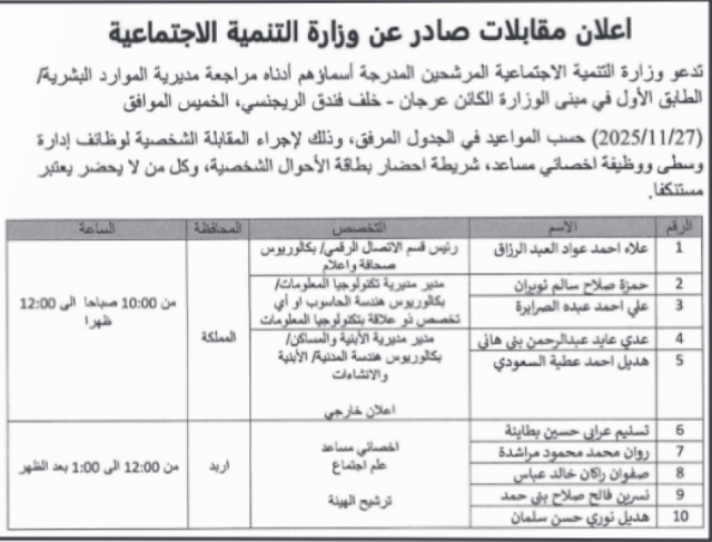 كلمات دلالية: سواليف وظائف شاغرة إجراءات التعيين