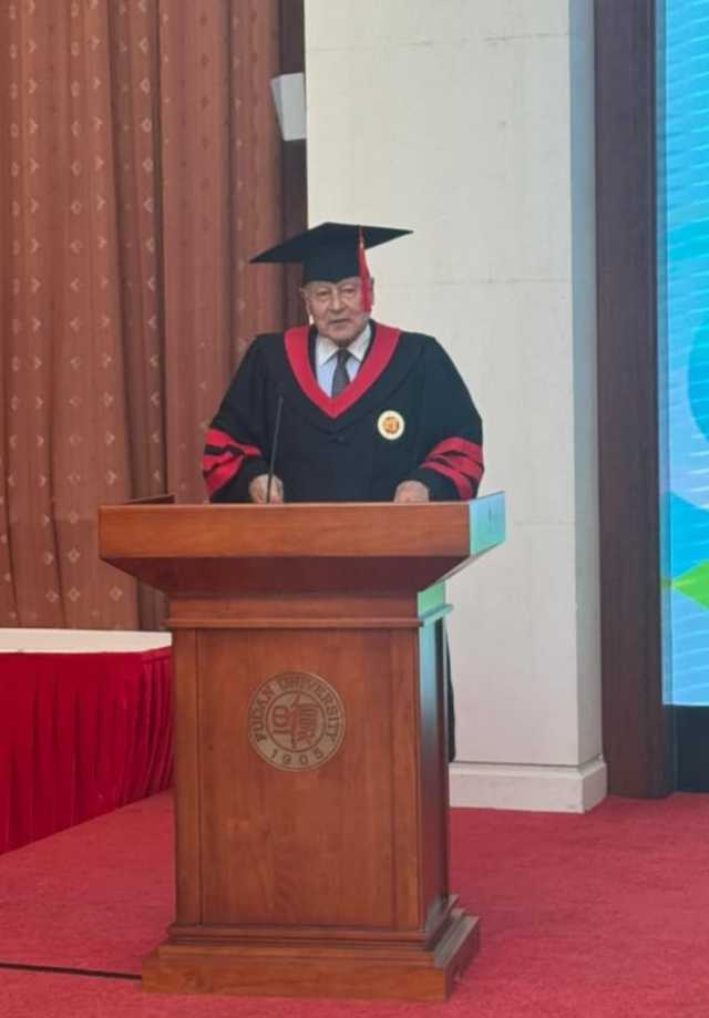 في الختام، أود أن أشكر جامعة فودان وأساتذتها وطلابها، وأشكر الشعب الصيني الصديق على هذا التكريم الذي سيبقى علامة مضيئة في مسيرتي العملية.