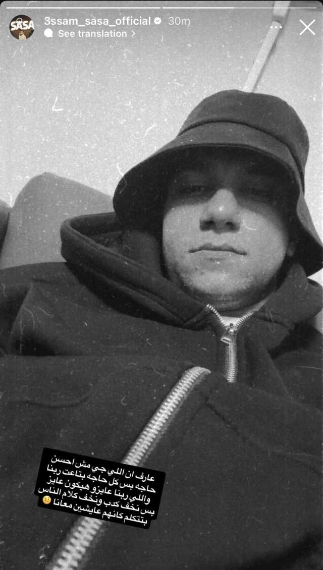 وكتب صاصا عبر ستوري على حسابه الشخصي بموقع إنستجرام: “عارف إن اللي جاي مش أحسن حاجة، بس كل حاجة بتاعت ربنا واللي ربنا عايزه هيكون عايز… بس نخف كدب ونخف كلام، الناس بتتكلم كأنهم عايشين معانا”.