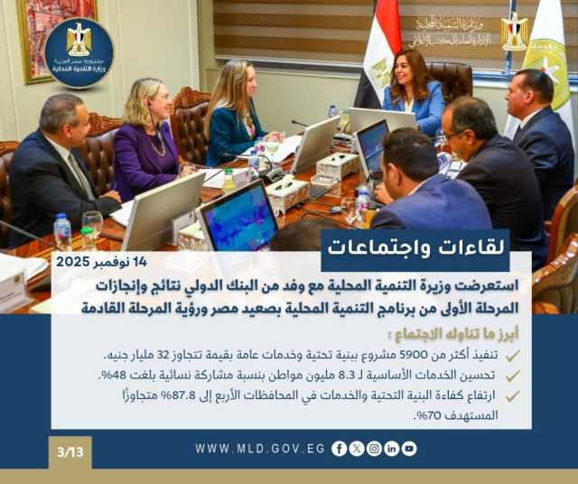 كلمات دلالية: التنمية المحلية منال عوض حصاد التنمية المحلية بمقر الوزارة بالعاصمة الجدیدة وزارة التنمیة المحلیة رئیس مجلس الوزراء خلال الفترة من البنک الدولی بحضور عدد من نوفمبر 2025
