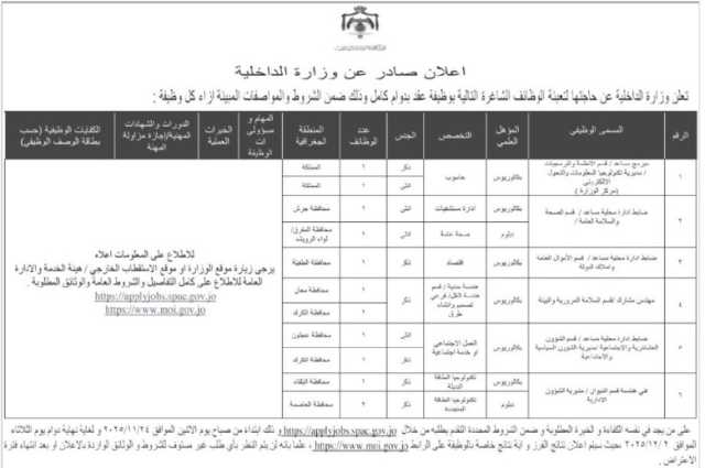 أعلنت #وزارات، و #مؤسسات_حكومية اليوم الاحد عن حاجتها لتعبئة #وظائف_شاغرة.