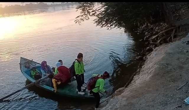 تلاميذ في سوهاج يذهبون للمدرسة بمراكب تقليدية والأهالي يستغيثون |صور