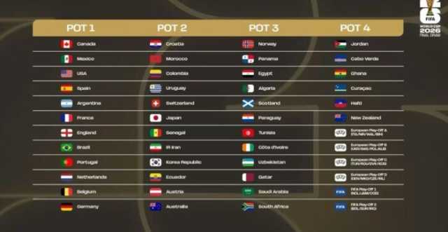 تصنيف المنتخبات قبل قرعة كأس العالم 2026وجاء في التصنيف الأول كلًا من: «الولايات المتحدة الأمريكية، كندا، المكسيك، إسبانيا، الأرجنتين، فرنسا، إنجلترا، البرازيل، البرتغال، هولندا، بلجيكا، المانيا».