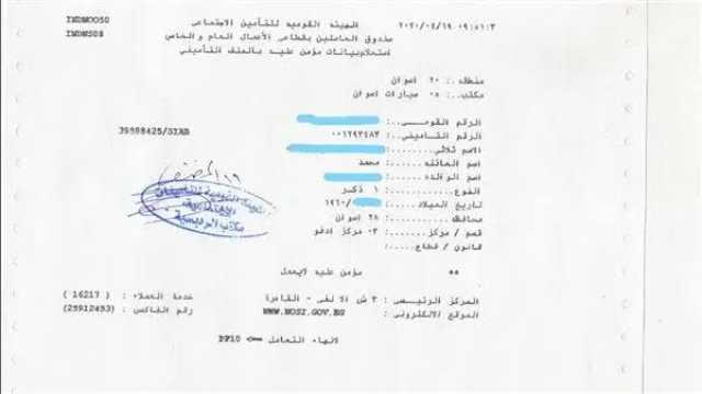 وبمجرد الانتهاء من هذه الخطوات، تظهر للمستخدم صفحة تحتوي على جميع بياناته التأمينية، بما يشمل مدد الاشتراك والأجر التأميني، والتي يمكن حفظها أو طباعتها عند الحاجة.