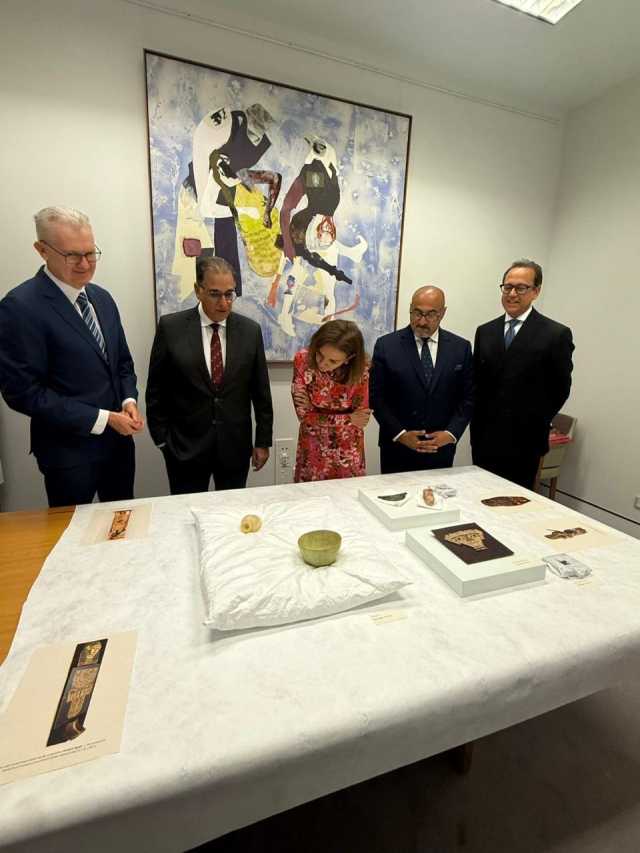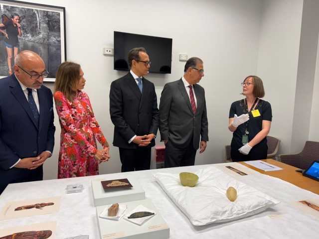 وذلك في إطار الزيارة التي يجريها نائب وزير الخارجية إلى العاصمة الأسترالية كانبرا، حيث تخلل اللقاء فعالية رسمية للتوقيع على المستندات الخاصة بإعادة سبعة عشر قطعة أثرية فرعونية نادرة إلى مصر، تعود إلى حقب مختلفة من الحضارة المصرية الفرعونية القديمة.