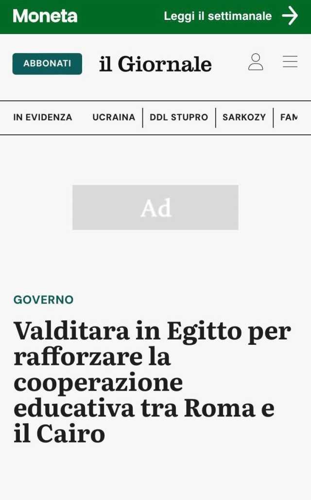 ومن جهة أخرى، ركز موقع Resegone Online Varese InLuce على البعد المؤسسي للزيارة، مشيرة إلى لقاءات جوزيبي فالدتارا مع السيد الدكتور مصطفى مدبولي رئيس مجلس الوزراء، والسيد محمد عبد اللطيف وزير التربية والتعليم والتعليم الفني، وعدد من الوزراء المعنيين ، كما أولت اهتمامًا كبيرًا لدور معهد دون بوسكو في القاهرة باعتباره رمزًا للتعاون الثقافي والتقني.