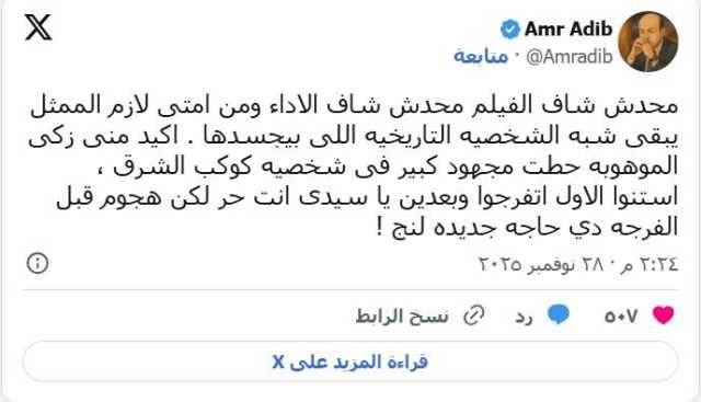 وكان من أبرز المؤيدن لـ منى زكي، الإعلامي عمرو أديب، الذي كتب عبر حسابه على «إكس»: «لم يشاهد أحد الفيلم، ولم ير الجمهور أداء البطلة، ومنذ متى أصبح لزاماً على الممثل أن يكون شبيهاً بالشخصية التاريخية التي يجسدها؟.. أكيد منى زكي الموهوبة بذلت مجهودًا كبيرًا في شخصية كوكب الشرق.. انتظروا حتى تشاهدوا الفيلم أولاً ثم احكموا عليه كما شئتم.. فكرة الهجوم قبل المشاهدة شيء جديد علينا».