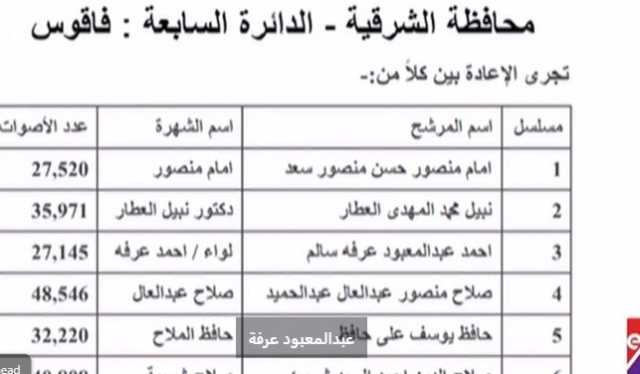 وجاءت نتائج فرز أصوات المرحلة الثانية لانتخابات مجلس النواب 2025 بمحافظة الشرقية كما يلي:
