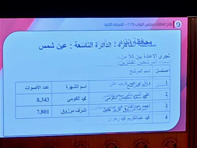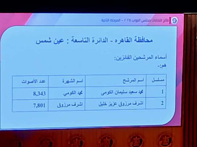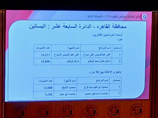 ننشر أسماء الفائزين في المرحلة الثانية من انتخابات مجلس النواب 2025 في محافظة القاهرة وأيضا الإعادة بين عدد من المرشحين.