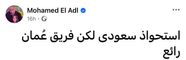 وكتب العدل، عبر حسابه الشخصي بموقع “فيسبوك”: "استحواذ سعودي لكن فريق عمان رائع".