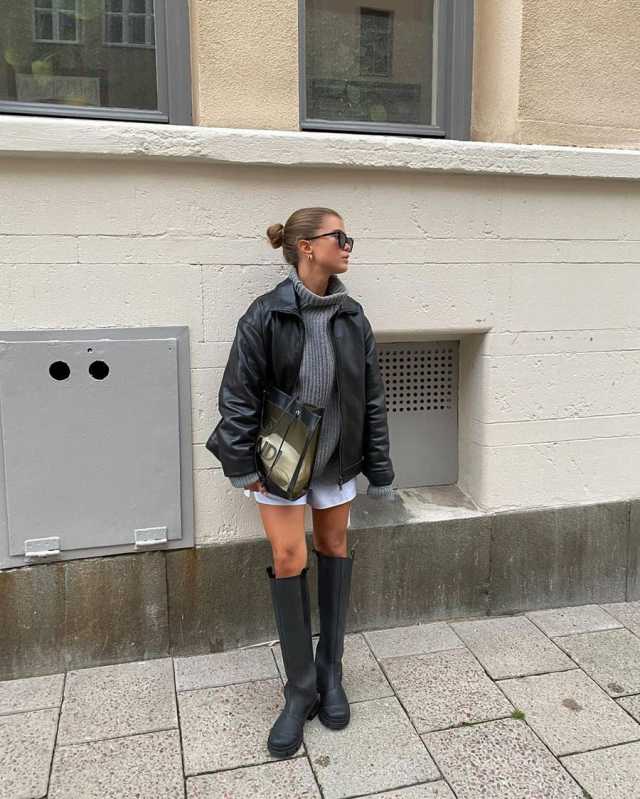 معطف مقاوم للمطر أو جاكيت جلد يمنح المظهر لمسة راقية وفي الوقت نفسه يحمي من البلل.