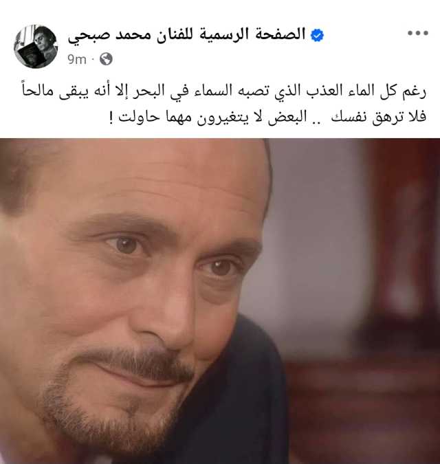 قال صبحي: «رغم كل الماء العذب الذي تصبه السماء في البحر إلا أنه يبقى مالحًا.. فلا ترهق نفسك، البعض لا يتغيرون مهما حاولت!».