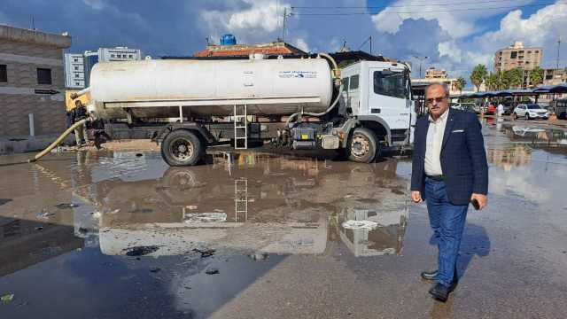 الدنيا غرقانة .. محافظ كفر الشيخ يتابع جهود كسح مياه الأمطار ببلطيم | صور