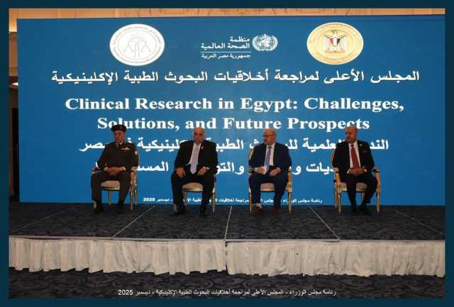 نظم المجلس الأعلى لمراجعة أخلاقيات البحوث الطبية الإكلينيكية التابع لرئاسة مجلس الوزراء، بالتعاون مع مكتب منظمة الصحة العالمية بمصر، ندوة علمية بعنوان «البحوث الطبية الإكلينيكية في مصر: التحديات، الحلول، والتوجهات المستقبلية»، بمشاركة قيادات صحية وبحثية ورقابية وجامعية وممثلي القطاع الخاص.