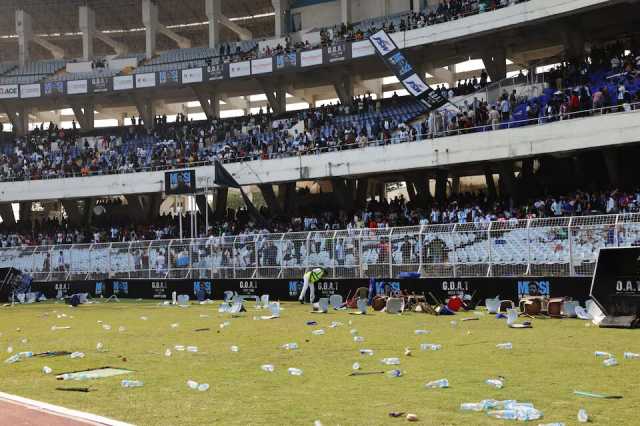 أطلق الحضور الجماهيري في استاد سالت ليك في مدينة كولكاتا الهندية رد فعل عنيف مساء اليوم السبت عقب الظهور القصير للنجم الأرجنتيني ليونيل ميسي خلال زيارة ميسي للهند التي كانت نقطة انطلاق جولة رياضية وترفيهية وتجارية في البلاد.