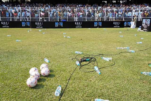 تصاعدت أحداث الفوضى خلال زيارة ليونيل ميسي للهند بعد اقتحام الجماهير أرض ملعب سالت ليك في كلكتا وإلقاء المقاعد والزجاجات احتجاجا على سوء التنظيم وقصر مدة ظهور النجم الأرجنتيني أمام المشجعين الذين دفعوا مبالغ طائلة لمتابعته عن قرب.
