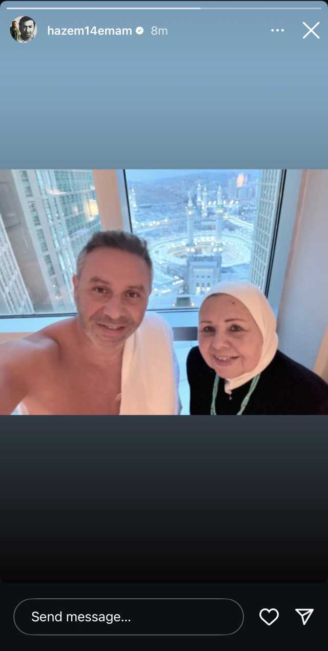 وظهر حازم إمام بملابس الإحرام، رفقة والدته الدكتورة ماجي الحلواني، من الحرم المكي اثناء أداء مناسك العمرة.