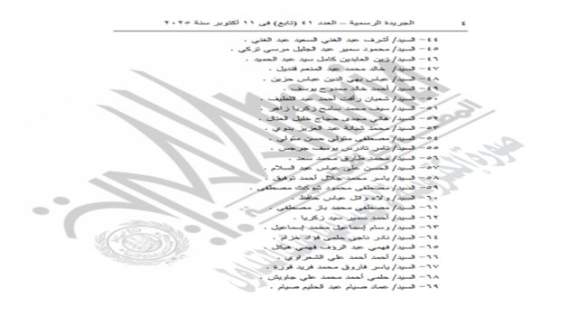 وجاء في المادة الأولى من القرار، يعين عضوًا بمجلس الشيوخ كل من: