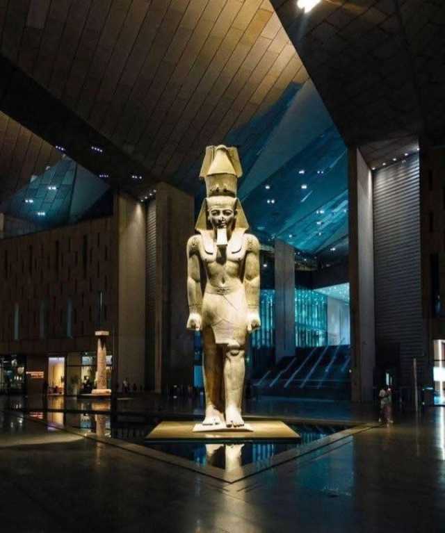 ومنذ ذلك الحين، تحوّل تمثال رمسيس الثاني إلى رمز مدخل المتحف، حيث صُممت ساحة الاستقبال لتضعه في محور بصري مدهش يجعل الزائر يراه أول ما تطأ قدماه المتحف. تقف خلفه الواجهة الزجاجية العملاقة التي تعكس صورته في النهار وتُضيئه ليلاً، في مزيج فني يربط بين الماضي والحاضر.