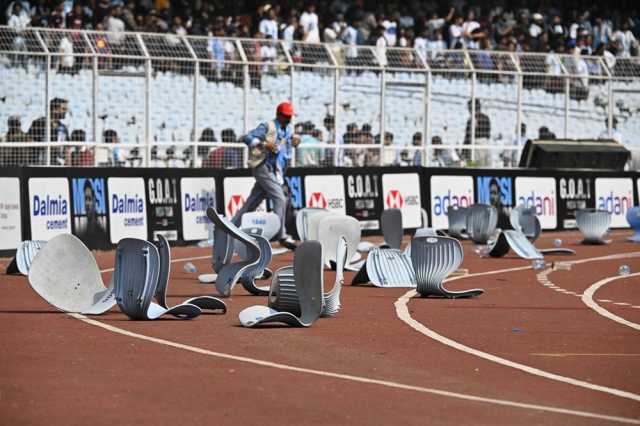 فوضى عارمة ومقاعد ممزقة.. جماهير الهند تُلقي مقذوفات بعد زيارة ميسي!