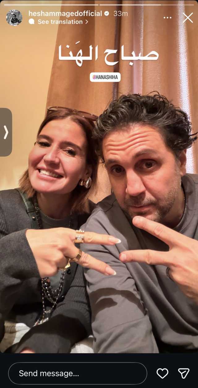 وظهر هشام ماجد، بصحبة الفنانة هنا شيحة، وعلق على الصورة: “صباح الهنا”.