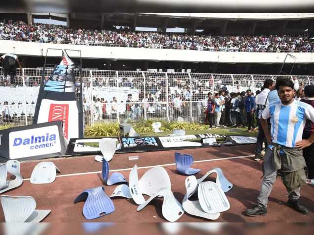 شهدت جولة النجم الأرجنتيني ليونيل ميسي في الهند، التي بدأت أمس السبت، فوضى عارمة واستياءً بين الجماهير، بعد أن قام بعض المشجعين بخلع مقاعد وإلقائها داخل الملعب، خلال زيارة قصيرة لمهاجم منتخب الأرجنتين وإنتر ميامي إلى استاد سولت ليك في كولكاتا.