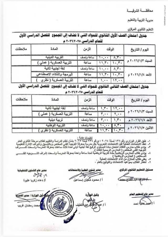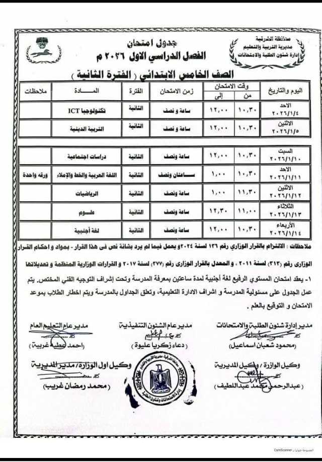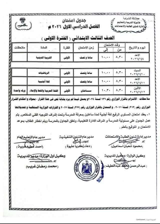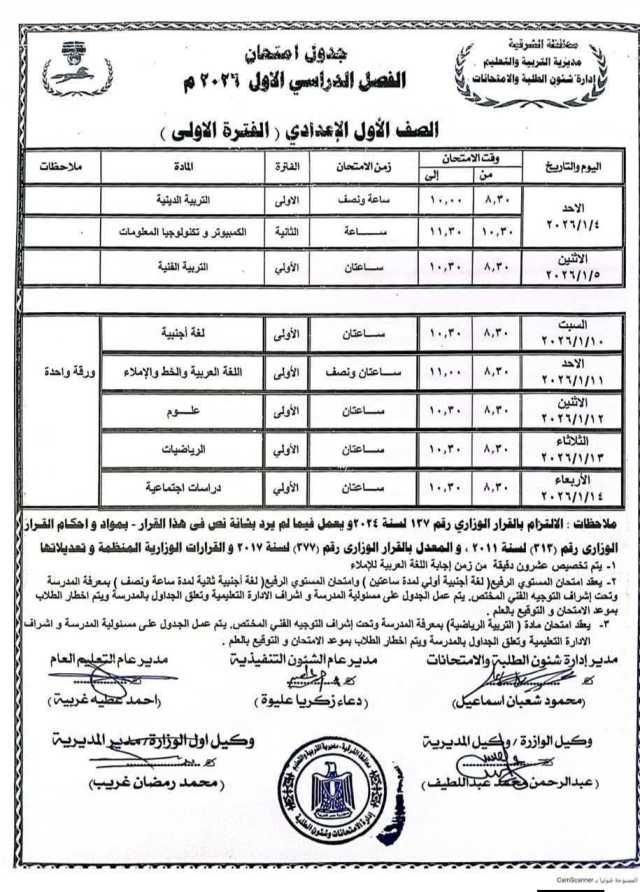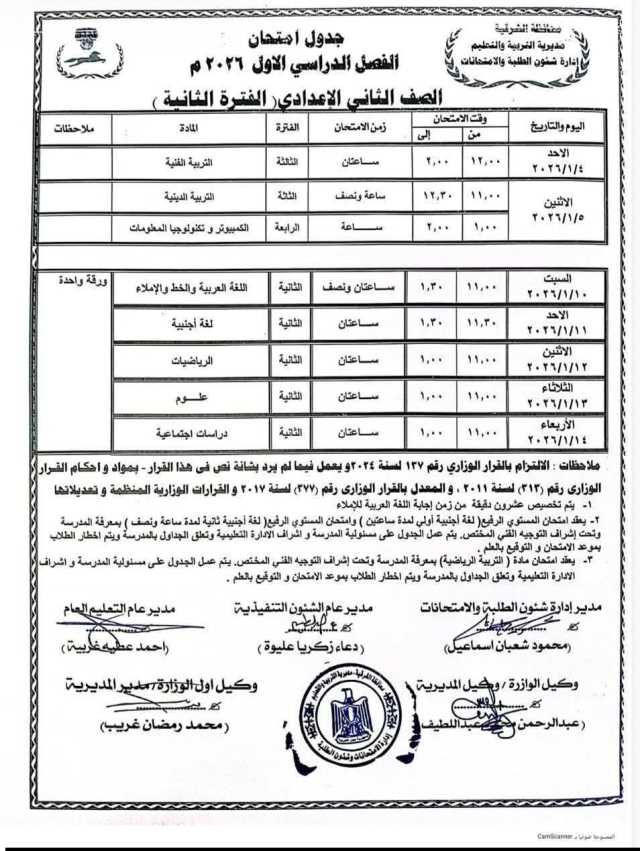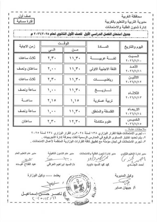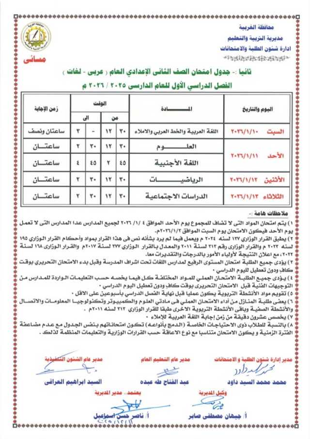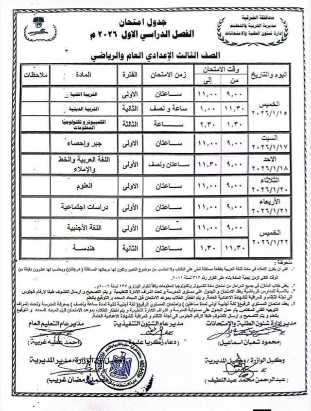 من جانبها بدأت مديريات التربية والتعليم وأبرزها مديريتي الشرقية والغربية ، في إعلان جدول امتحانات نصف العام 2026 جميع الصفوف