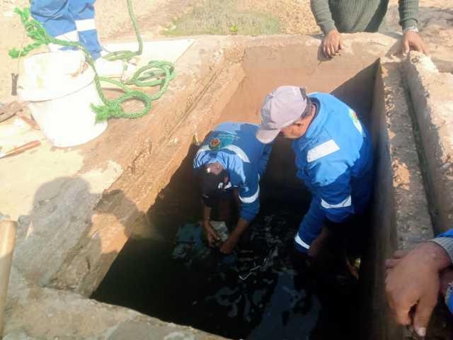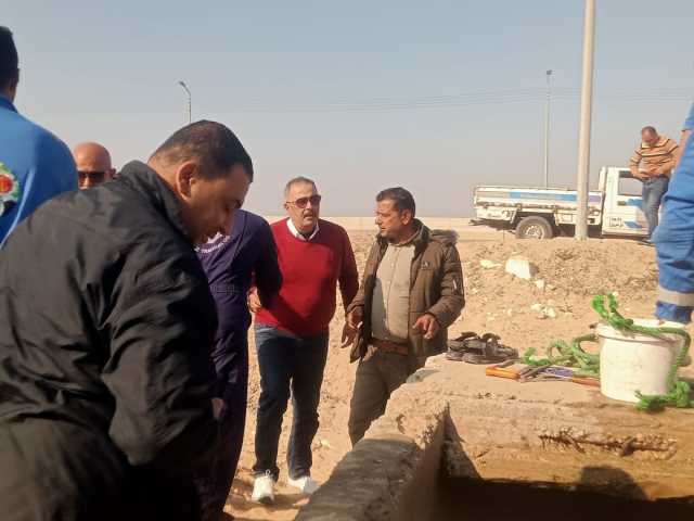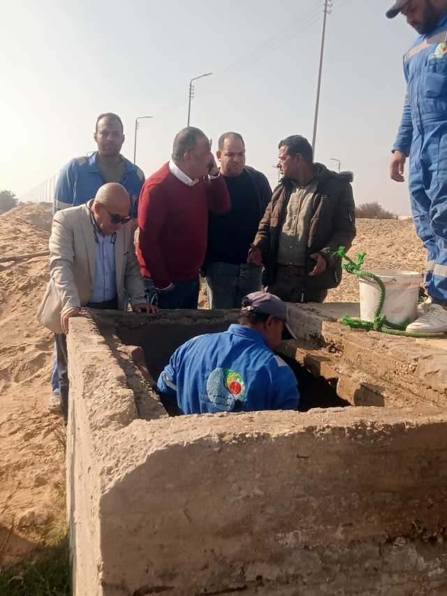 مياه القناة يشرف على أعمال إصلاح الكسر المفاجئ بماسورة مغذية لمنطقة كوبري السلام